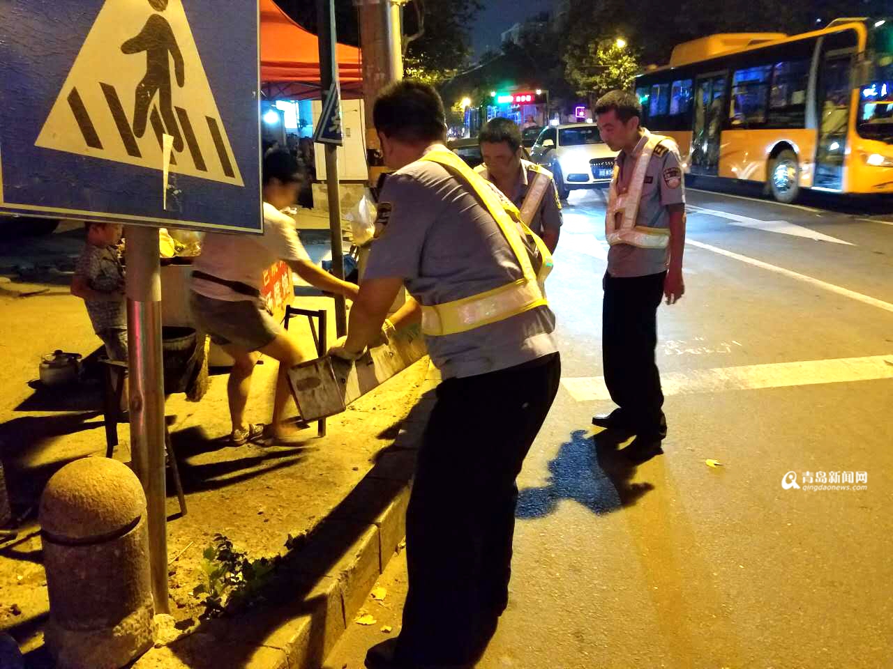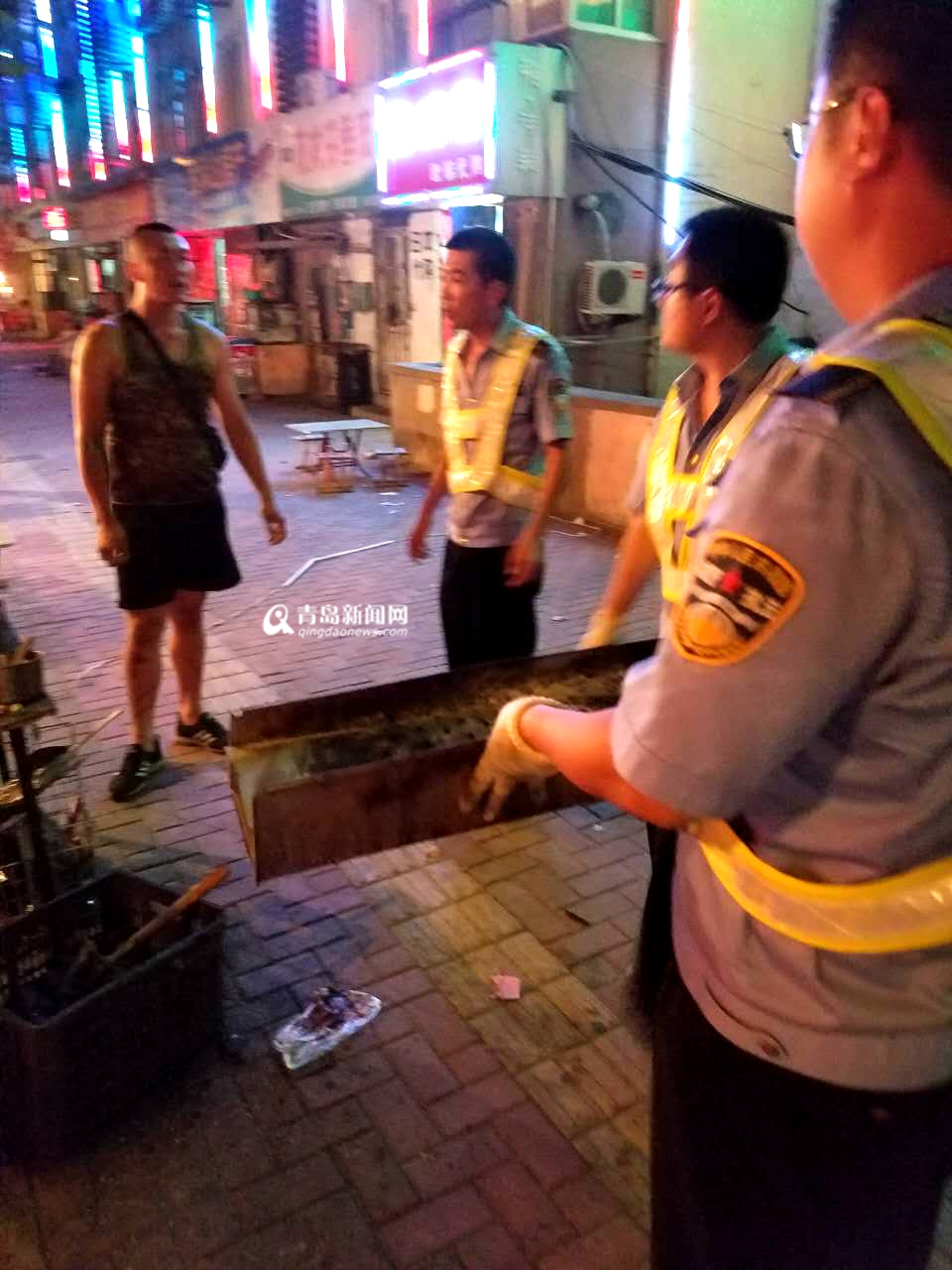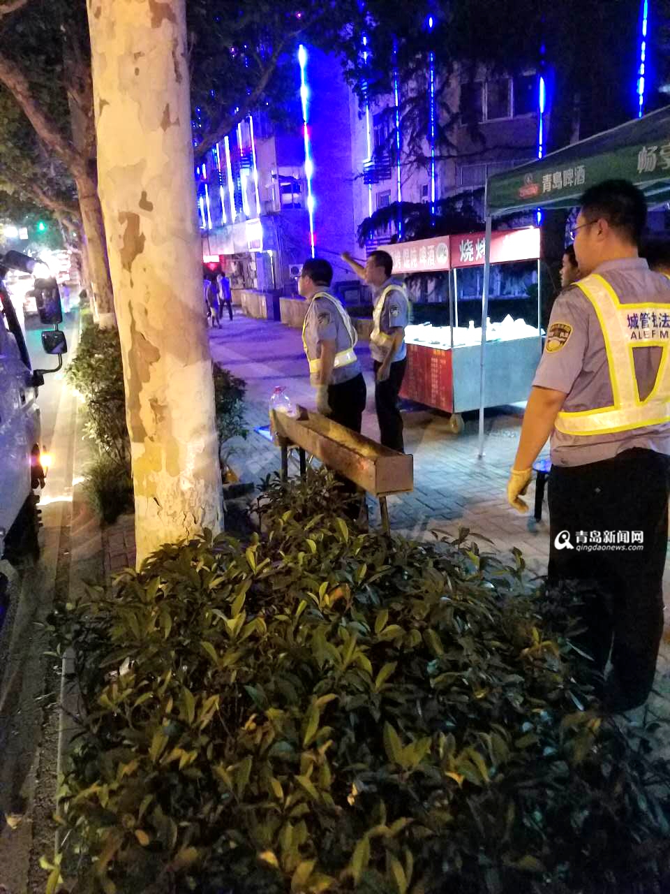 2016年7月25日夜间18点至23点,市北区四方街道城管执法中队继续推进“守护清凉夏夜行动”,针对近日群众举报、反映强烈的瑞昌路、人民路、温州路、重庆南路、宁化路、嘉兴路等路段的占路烧烤及油烟扰民等问题,出动一辆执法车6名执法人员,进行了集中清理整治。