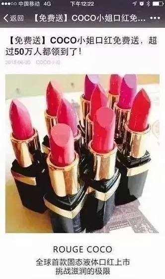 微信朋友圈曾有过火爆一时的“香奈儿口红试用”的宣传广告,不少爱美的女生申请之后,在对方的网页上填入了自己的联系电话和家庭住址。结果不但收到的口红是假货,还为此支付了16元的“快递到付”费。