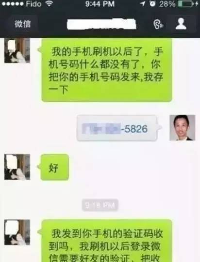 最近有网友收到朋友微信发来消息,告知其手机刷机,号码丢失,需要该网友的手机号。