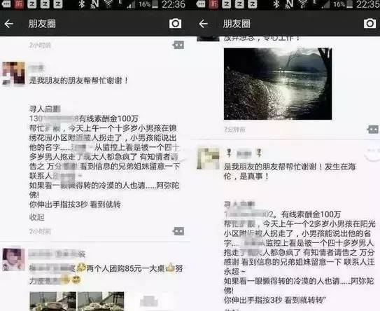 微信朋友圈里还经常发布“生病求献血”、“贫困求捐款”“帮忙找孩子”等传递正能量的文章,但这些看似“正能量”的内容,也可能暗藏诈骗电话。