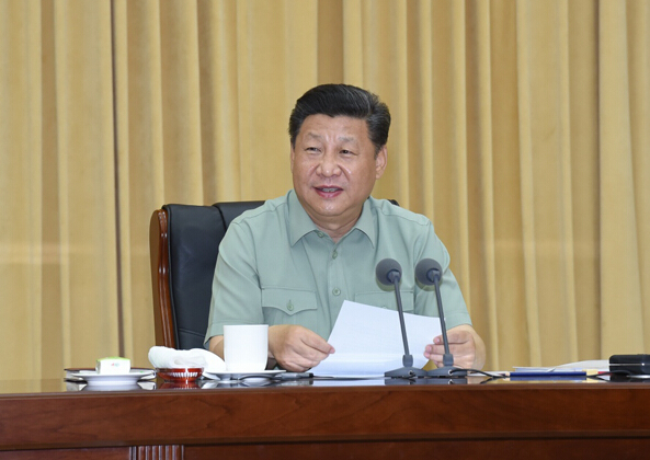 八一建军节到来之际,中共中央总书记、国家主席、中央军委主席习近平7月27日上午视察陆军机关,代表党中央和中央军委,对陆军第一次党代表大会的召开表示热烈的祝贺,向人民解放军全体指战员、武警部队全体官兵、民兵预备役人员致以节日的问候。这是习近平听取陆军工作汇报后发表重要讲话。(新华社记者 李刚 摄)