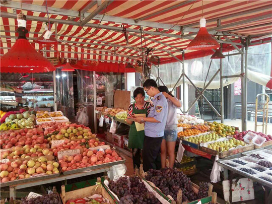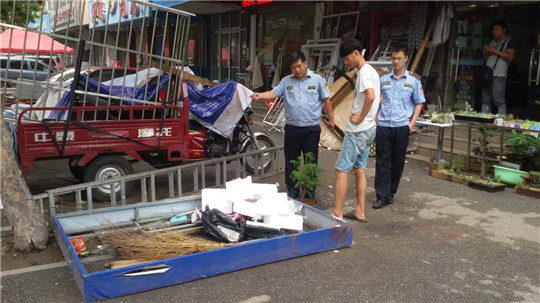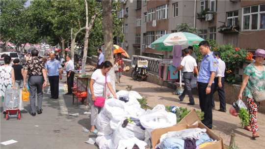 便民市场设置极大地方便了居民,但是市场冒市、暴市导致的脏乱差堵却扰民不浅,也是执法之重点。7月27至29日,宁夏路中队一直在清理整治镇江路市场和胶宁高架桥底市场,共规范商户26家,规范门头10家,清理游商浮贩24人次,兼顾拆除横幅两条;7月20日以来,洛阳路中队一直派出执法人员,以守岗和巡查相结合,持续清理开平路早市,使得市场周边秩序大为改观;7月26日至29日,敦化路中队每天出动2车8人,分2次清理整治抚顺路批发市场,规范门头占路经营30余处,新疆少数民族搭棚卖枣6处,暂扣帐蓬3个,广告灯箱8个;大港中队规范辖区旧货市场,整治占路经营30处,暂扣桌椅等12个,拆除地锁6个,方便了路人行走。
