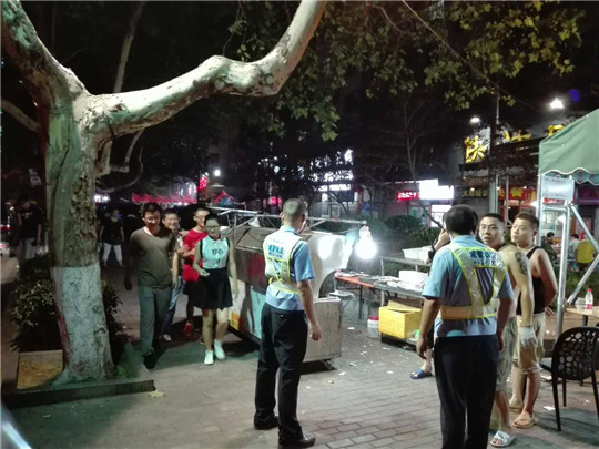 城管清烧烤,是夏季街头巷尾的主题,让我们略取7月27日一夜,看执法中队的“灭狼烟”行动。登州路街道城管执法中队协同综合执法局机动中队共2车10人,从晚8点至23点,开始辖区露天烧烤第9次整治,继续采取“杀回马枪”的方式,暂扣烧烤炉3个,桌椅10个;辽宁路中队围绕处置群众举报,组织2车10人,有针对性地展开露天烧烤整治行动,暂扣烧烤炉具5个;洛阳路中队1车5人,规范辖区占路烧烤12家,暂扣烧烤炉3个,风扇3个;合肥路中队出动2车10人,规范辖区露天烧烤占路经营,暂扣烧烤炉具3个、煤气罐1个、桌凳一宗;延安路中队对辖区内夜间烧烤摊点及门头业户进行清理整治,共没收炉具3个,占路经营餐桌6个,马扎12个;四方中队继续推进“守护清凉夏夜行动”,出动一辆执法车6名执法人员,围绕群众来信来访,连续第7个夜晚进行露天烧烤清理整治。