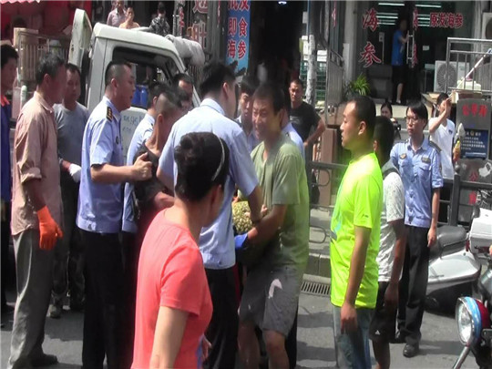 七月的青岛,夏蝉唧唧,热浪滚滚。城管执法人员依然像往常一样,沿街规范门头业户跨门经营,依法取缔无证商贩的占路经营。7月22日,市北城管登州路中队2辆执法车,载着10名执法队员对南山市场周边和荣华小区的占路经营现象进行整治,在炎炎烈日炙烤下,汗水已经浸透了执法人员的衣服,当清理到荣华小区内一个占路经营的菜摊前,无证摊贩不服从执法人员的管理,对占路经营的行为拒不改正,无奈之下,执法人员只好依法对占路经营的物品进行暂扣,摊主当即辱骂和推搡执法人员,并动手抢夺被暂扣的物品,阻扰执法人员的工作。旁边的无证摊主也“声援”这位暴力抗法的“同行”,场面十分混乱。整个过程中,城管执法人员在宣传法律的同时,对摊主的过激行为保持冷静克制,最终在执法人员的坚持下,暂扣了占路经营的物品,取缔了该摊贩的违法行为。城管执法人员按照法律法规依法对违法犯罪行为进行管理,执法目的是提升城市市容环境秩序,为市民宜居生活保驾护航,希望得到市民的支持和理解。
