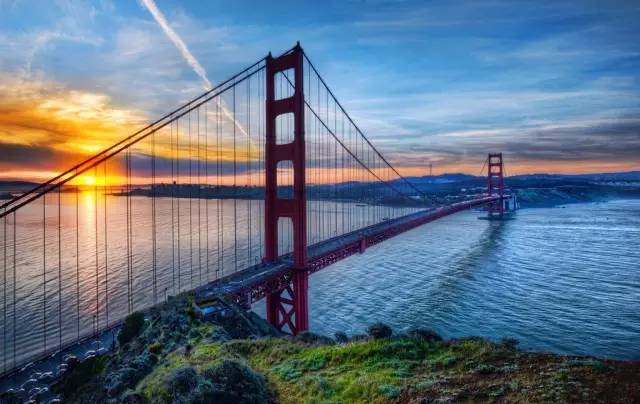 金门大桥位于美国加利福尼亚州是世界上最大的单孔吊桥之一,被视为旧金山的象征。