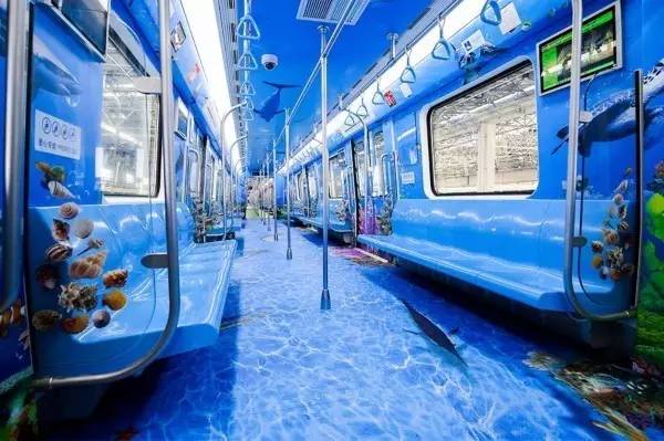 青岛地铁也有着这样的风景,3D彩绘车厢别具特色,展现着青岛四季风光,美轮美奂,挤地铁也变成了一种享受。
