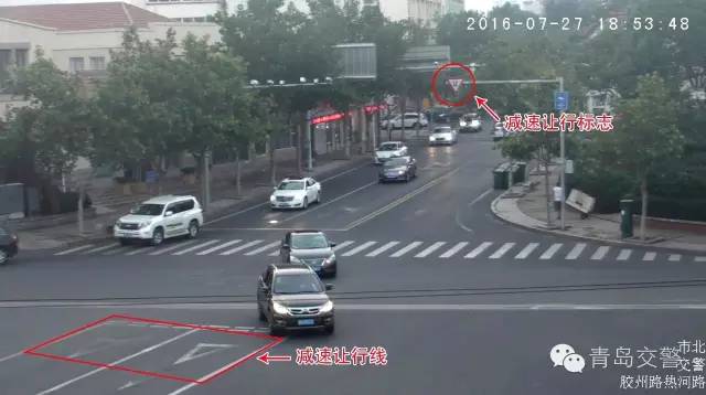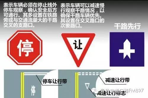 减速让行标志、标线告示驾驶人应当慢行或停车,观察干道行车情况,在确保干道车辆优先、确保安全的前提下,可以通过路口。