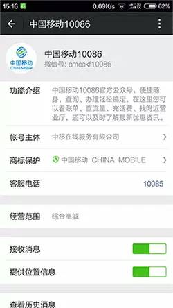 △微信关注“中国移动10086”微信服务号。