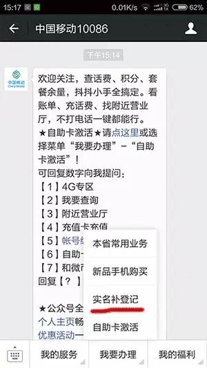 ②登录手机营业厅点击服务-办理-实名登记