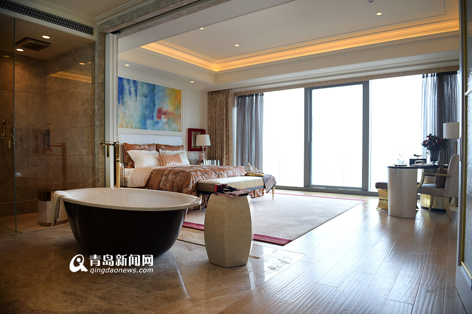 豪宅的每一个卧室都有落地大窗户,透过窗户往南看可以俯瞰整个浮山湾,往北看可以一览太平山的美景。据了解,这处豪宅总价值3000多万元。