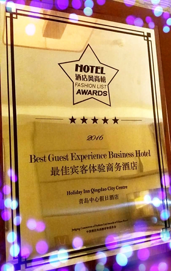青岛中心假日酒店喜获2016中国酒店风尚榜最佳宾客体验商务酒店奖