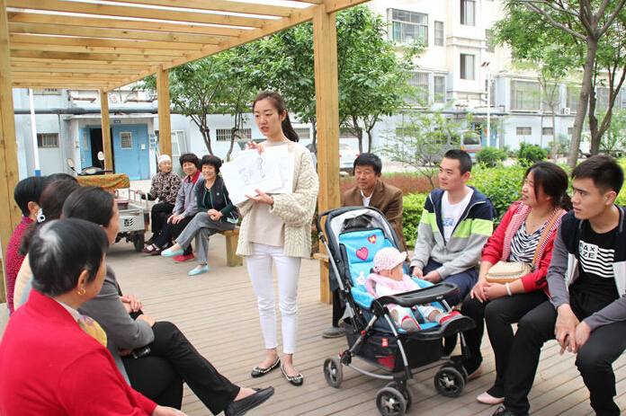 黄山街道纪工委纪检干部杨雪正在用自己创作的《准则》、《条例》系列漫画,为黄西社区党员干部讲解党规党纪知识。