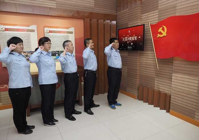 邹平县地税局部分党员重温入党宣誓,集体过“政治生日”。