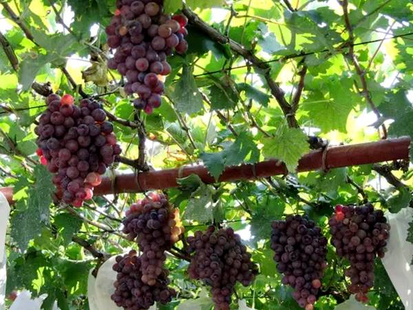胶北街道可花合作社有耐储运的优质日本品种藤稔葡萄,也有汁多味甜巨峰615葡萄,个个饱满圆润、色泽鲜艳、颗粒饱满。采摘新鲜的葡萄不需要等到九月,胶北肖家屯葡萄园,晶莹剔透的葡萄已挂满枝头。