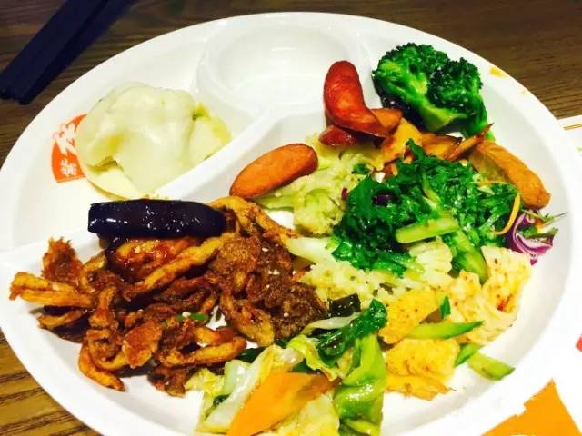 本以为吃素怎么能吃饱,可是吃过的都说很好吃,自助取餐,清口的素菜,没有其他餐厅的喧闹,来到这里就餐的仿佛都很静心。中午的人气很旺,一直有新菜在上,凉菜做的比较好吃,主食有馒头、米饭、炒面、小饼和包子,流食有小米粥、黑米粥、花生糊 ,还有酸梅汤还有水果,偶尔吃吃这种素的挺好的。