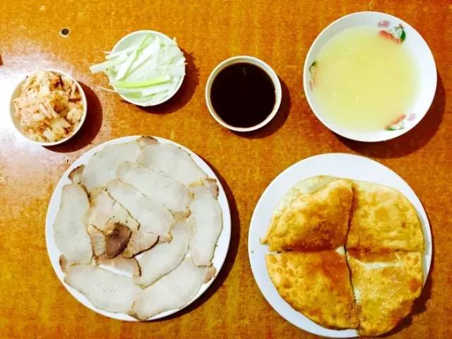吃货都知道的店,以前的大光明影院旁的路上,熏肉好吃很香,大饼酥酥松脆,泡菜好吃爽口又解腻,饼里抠出一个夹层,把肉菜还有葱丝卷起来,配上好喝的不限量的小米粥,一人一套全部吃完绝对不是问题。