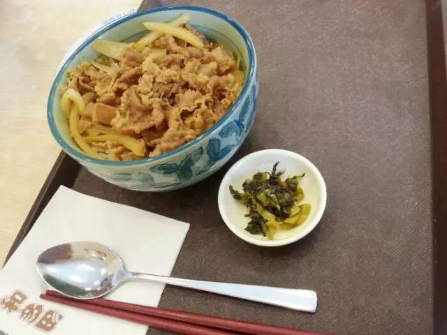 开了很多年的老店了,专门做牛丼饭的。每次饭点去都会有很多人,下面是米饭,上面是牛肉卷,就和涮羊肉那个卷是一样的,吃的时候拌开,和味增汤是绝配~