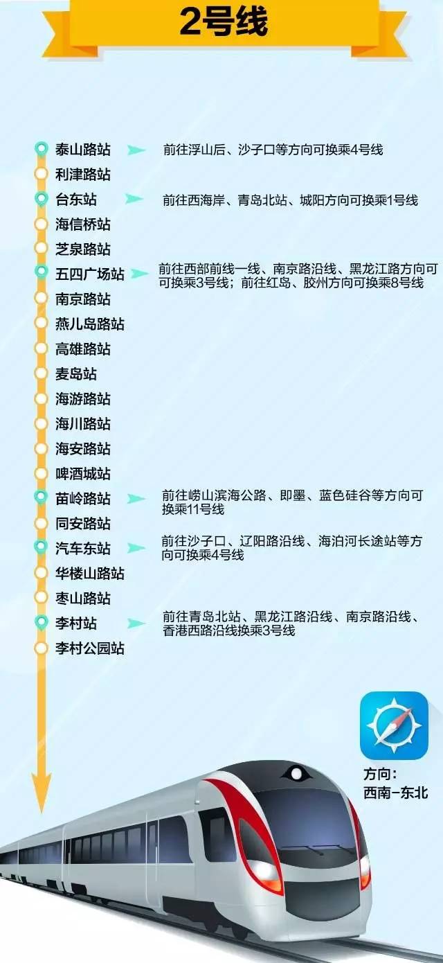 地铁2号线计划2017年底前实现东段通车,全线2018年通车。据了解,青岛地铁2号线一期工程线路全长25.2公里,均为地下线,途经市北区、市南区、崂山区、李沧区四个区。