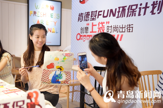 青岛新闻网讯 90后们七嘴八舌的说着自己新潮又个性的环保观。近日,青岛东海中路肯德基餐厅格外养眼,这里聚集了一群美女环保达人,她们用画笔在环保包上作画,尽情的表达着自己的环保理念。据了解,这是青岛肯德基发起的 “社区关爱—FUN环保计划”环保公益活动,倡导大家保护环境,鼓励居民使用环保包,吸引了一大批年轻人跃跃欲试,将自己的环保时尚理念诉诸于笔端。