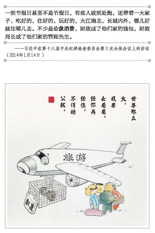 原创漫画作镜鉴。《清风漫笔》从身边案例、常见事物、熟知形象中,梳理出诸如朝“酒”晚“舞”、拉帮结派“抱大腿”、称兄道弟搞“圈子”等“机关病”,并相应绘制一幅幅极具艺术性的国画,以反面典型深化对廉政论述的理解。如一位身穿正装的党员干部在镜子里却是头戴官帽、身穿蟒袍的形象,形象揭示了官僚主义。