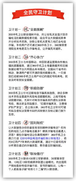 近日,针对电信诈骗高发态势,360手机卫士综合多种技术手段全面升级安全风险提醒机制、联合公安、运营商、高校、媒体共同发起“全民守卫”计划,向电信诈骗“Say No!”