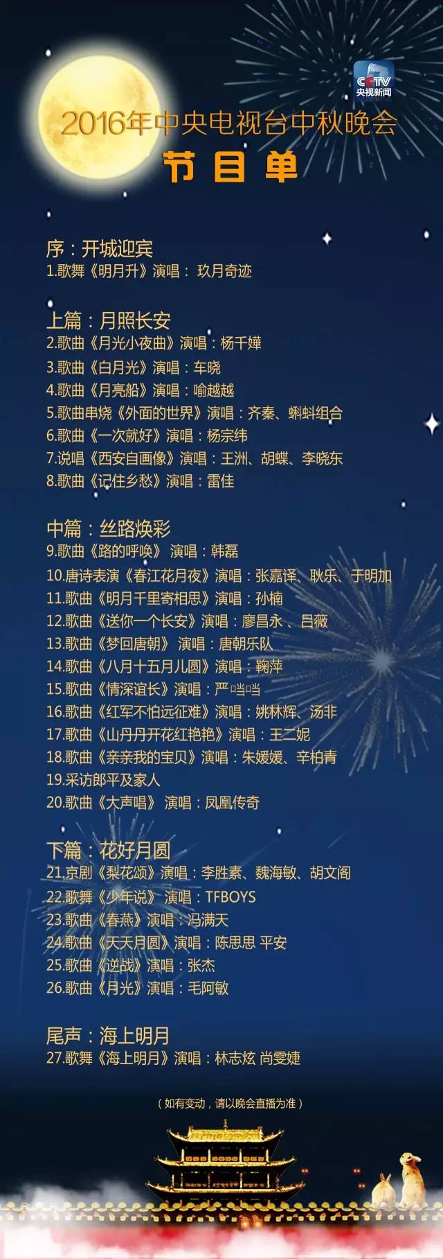 一共26个节目。节目单在此,据说还有神秘嘉宾↓↓↓