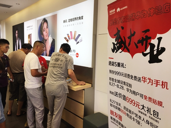 作为全球智能终端的领导品牌,华为始终致力为消费者提供最好的用户体验以及最优质的服务,凭借在产品研发及消费者体验这两方面的持续投入,华为已在全国北上广深、南京、杭州、成都等重点城市的核心商圈建立了近300多家体验店,超过10000多个专区专柜。与此同时,华为与2015年第四季度启动“千县计划”目前已完成近200个县市,预计在2017年将全部完成。