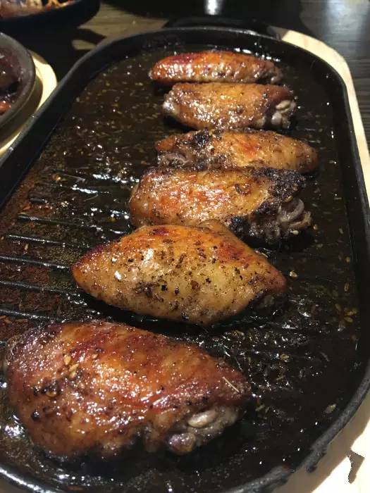烤鸡翅:鸡翅考的很饱满,加上特制的汁儿一起烤。汁已经入味,吃一口,既有鸡肉的鲜味,而秘制酱汁的味道也很浓郁。