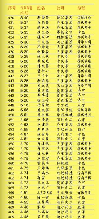 关于山东富豪榜山东富豪榜是继福布斯富豪榜、胡润百富榜、新财富500富人榜之后国内第四张富豪榜,是国内首个以省域为单位的企业家财富榜单,更是山东省唯一一张同类榜单!