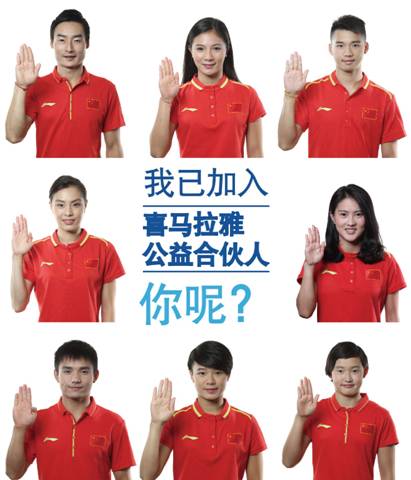 奥运冠军吴敏霞、陈若琳、何姿、秦凯等中国跳水队全体队员,都已加入“喜马拉雅环保公益基金”,成为首批“自然堂•喜马拉雅公益合伙人”