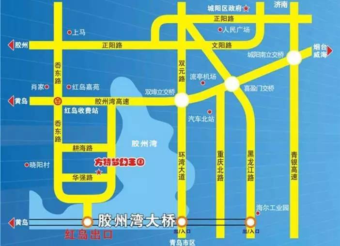 自驾游:1、杭鞍快速路(青银高速)—胶州湾高速—红岛—方特梦幻王国2、重庆路(黑龙江路)—正阳路—岙东路—红岛—方特梦幻王国3、胶州湾大桥—红岛—方特梦幻王国