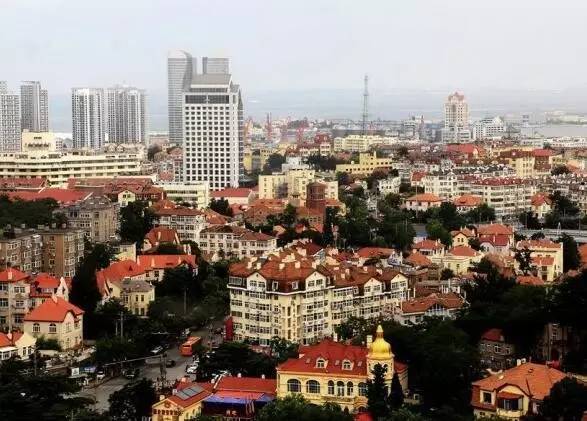 像绿色蘑菇镶嵌在错落有致的红瓦洋房之中