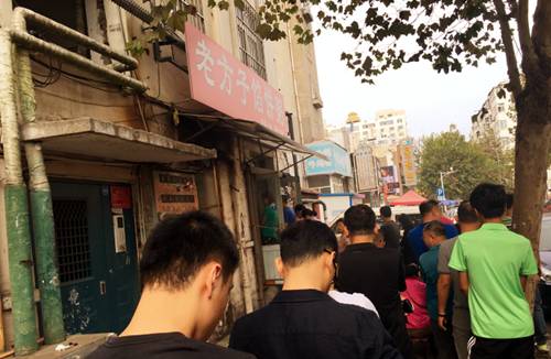 №002老方子馅饼粥评价一家老店的口碑,人气是非常重要的一环。老方子就是这样一家从人气到口碑都爆棚的老铺。看看下图这个队伍排的盛况,就问你怕不怕!几乎每天早晨都是如此!老顾客去了,对老板说“一碗饭”就是要一碗甜沫,配上一荤一素两个馅饼,但是请趁热吃,后边各位老哥可都盯着你那坐呢..