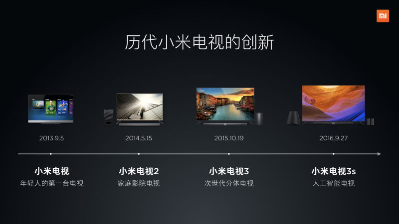 2017年01月份,新小米盒子(2013年10月上市)、小米电视3(55英寸/60英寸/65英寸曲面/70英寸)、小米电视主机完成升级。