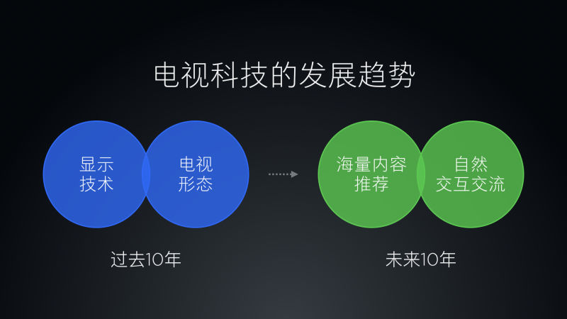 其次,从电视产业本身的科技发展趋势来看,过去10年是显示技术和电视形态爆炸性发展的10年,LCD、LED、PDP、激光投影、全息技术,都是在过去10年集中出现的。未来10年,一定是在“海量内容推荐”和“自然交互交流”等人工智能技术上实现质的飞跃和突破。