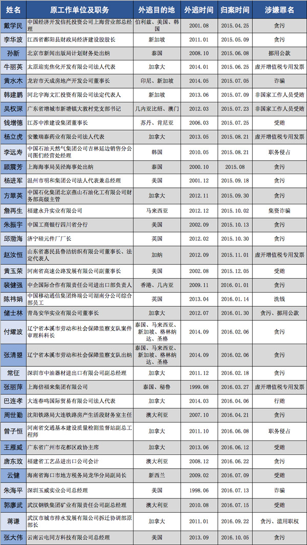 20个省区市追逃办在追回“百名红通”人员的战役中有所收获