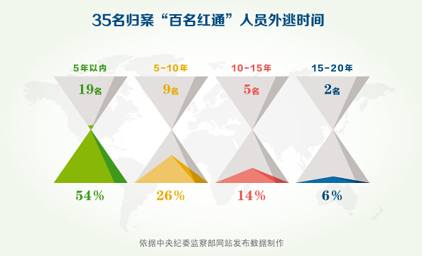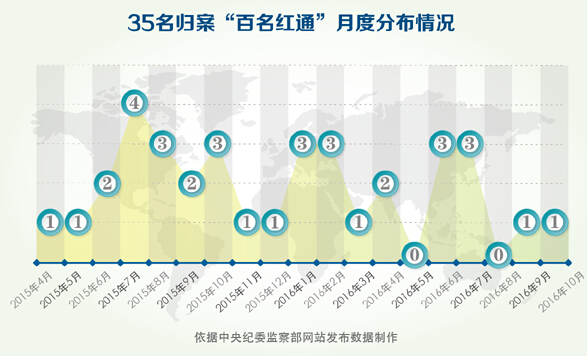 《“百名红通人员”张大伟从美国回国投案自首》《朱海平、郭廖武投案自首“百名红通人员”三分之一归案》《“百名红通人员”王雁威被缉捕归案》……点开中央纪委监察部网站反腐败国际追逃追赃专栏,“百名红通”人员归案的时间进程一目了然,从2015年4月到2016年10月,几乎每个月都有“百名红通”人员归案。