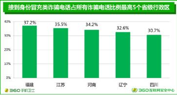 接到身份冒充类诈骗电话占所有诈骗电话比例最高5个省级行政区
