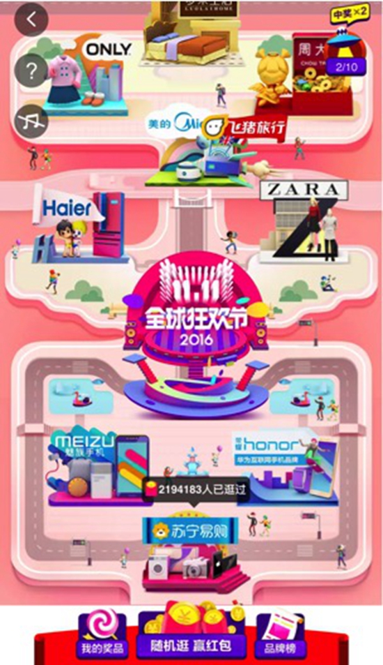11月1日,天猫“狂欢城”正式开启,800多个参与品牌参,13款精彩有趣的互动游戏,总金额1.7亿、面额在1~1111元之间不等的红包,让消费者边玩边嗨。