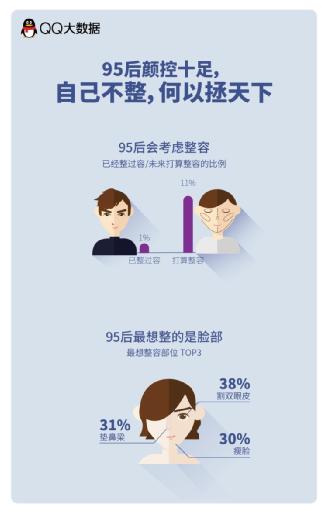 作为更加勇于接受新鲜事物的新兴力量,95后对于整容的接受度相当高,据《95后审美观报告》显示,能接受整容的95后高达85%,并有11%的95后未来打算整容,但近八成受访的95后都认为过度整容的产物“网红脸”并不是主流审美。
