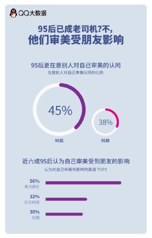 近日,QQ大数据发布《95后审美观观》报告显示, 95后并非我们想象中的“非主流”,他们不喜欢网红脸,有自己的审美标准,接受男生化妆,热衷社交个性化等,报告用数据还原出这个时代年轻人最真实的喜好。
