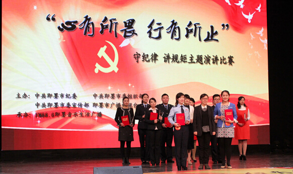 举办全市“心有所思·行有所止”守纪律讲规矩主题演讲比赛,征集廉政演讲文稿200余篇,经初赛、决赛,评选出一二三等奖,决赛实况在电视台播放,营造出守纪律讲规矩浓厚氛围。