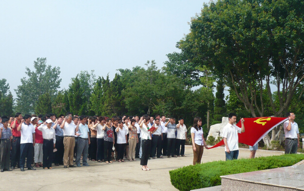 围绕周浩然纪念园、县委纪念馆等本地资源,积极提炼景区廉政文化要素,创建廉政文化进景区的品牌,打造宣扬爱国教育、打造红色旅游、建设廉政文化阵地的高效平台。(图为党员干部在周浩然纪念园的周浩然雕像前庄严宣誓)