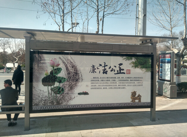利用公交站台开展廉政文化宣传,发挥公交站台人流量大、覆盖面广的优势和廉政宣传画直观醒目、易于宣传的特点,让党员干部和群众们在潜移默化中接受廉政宣传教育,从而营造以廉为荣、以贪为耻的良好社会氛围。