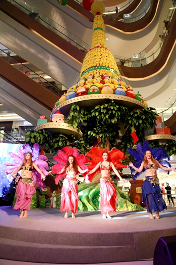 蜜罐森林女郎森巴舞为凯德MALL•新都心拉开第一个圣诞亮灯仪式的序幕,来自KD521星球的4名蜜罐森林女郎,身穿热辣的桑巴舞衣,进行表演。亮眼的服饰,激情的舞蹈,点燃冬日的热情,引爆全场。