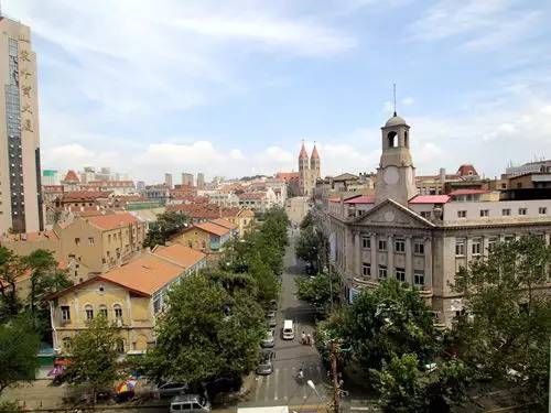肥城路大体上是东西走向,在东端和浙江路相接处是著名的青岛天主堂,在下午从肥城路上拍摄天主堂的最佳取景角度