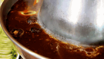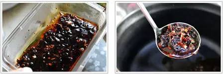 2、火锅底料会开包直接倒入保鲜盒内分次使用。放入约1勺香辣底料,润一下锅。