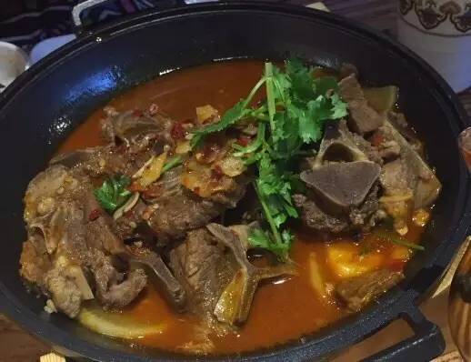 炖得比较烂,口味微辣,肉香而不腻,汤浓而不膻,里面还有白萝卜和山药,营养丰富,推荐!吃饭的时候还可以观赏新疆舞表演哟~更有其他烤羊肉串、烤羊排等各式羊肉大餐等你品尝~
