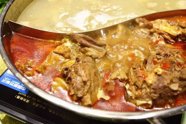 羊蝎子锅,锅底的羊蝎子量非常大,炖的很烂,而且基本没有膻味,不吃羊肉的同学也依然无压力!果然好羊肉都是不膻的!喜欢羊肉的喜欢正宗清真羊肉的一定要来~冬天进补佳品!