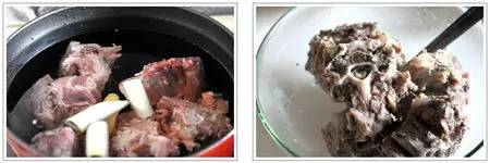 做法:1、羊蝎子清水浸泡出血水。然后锅中放入冷水,葱段、姜片、料酒和羊蝎子大火烧开去血沫。捞出羊蝎子控干备用。
